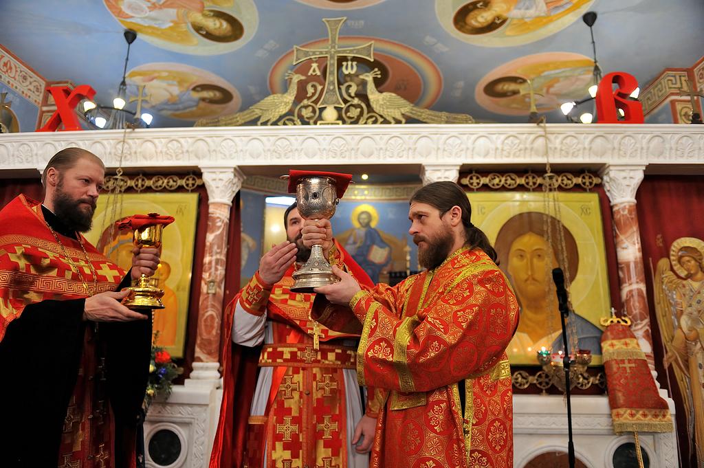 Проповедь перед причастием произнес клирик Покровского храма иерей Алексей Котельников.