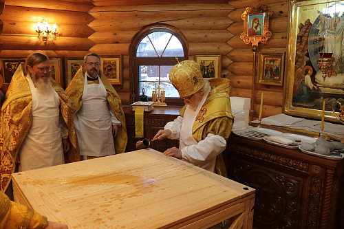 Его Преосвященству сослужили: протоиерей Анатолий Кожа, благочинный Параскево-Пятницкого округа, настоятель храма Параскевы Пятницы в Качалове, протоиерей Василий Василевский, настоятель храма Святой Марии Магдалины в Южном Бутове, духовенство Московской епархии.