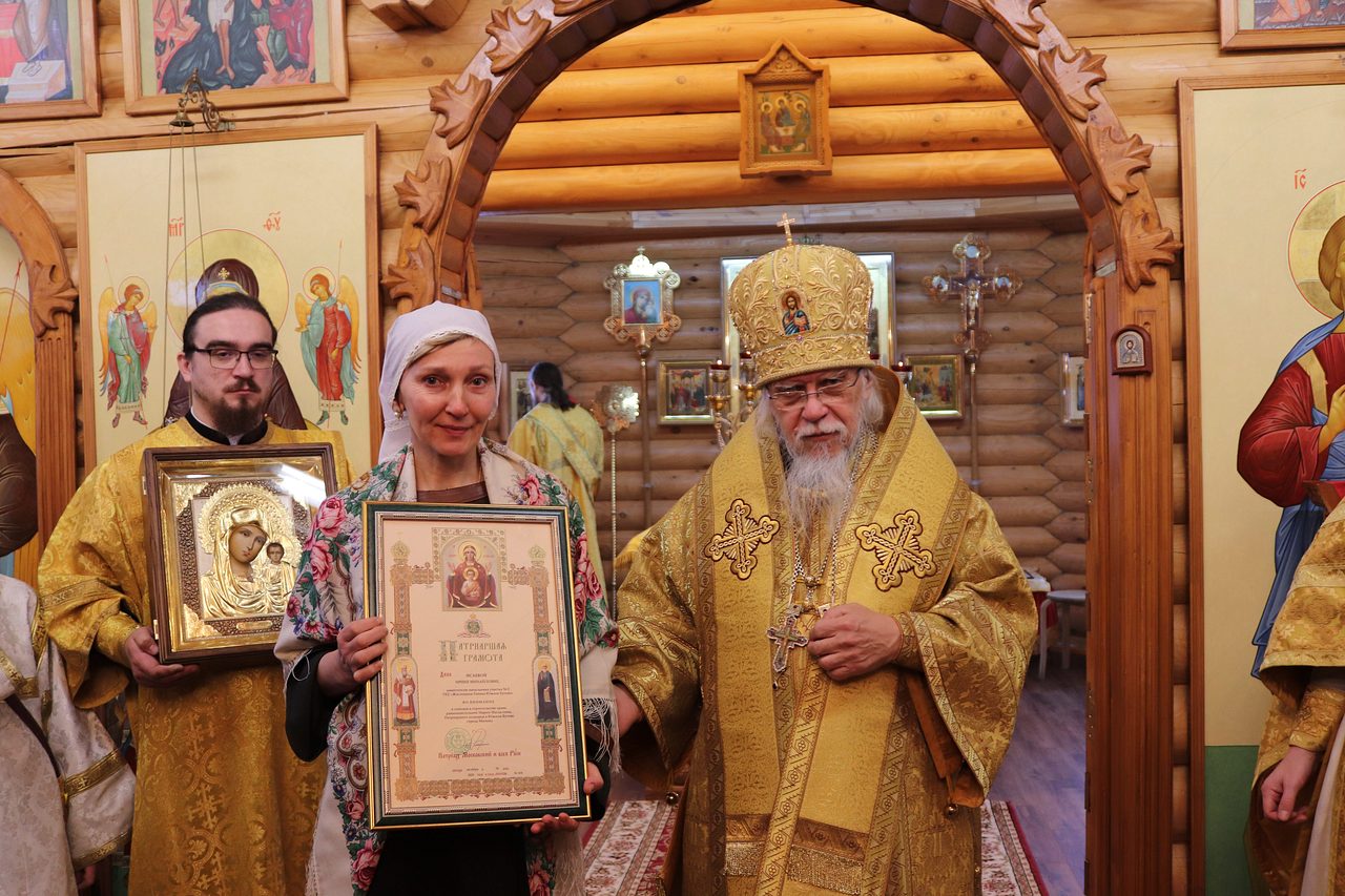 Настоятель храма преподнес от храма в подарок Его Преосвященству икону Казанской Божией Матери