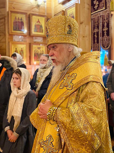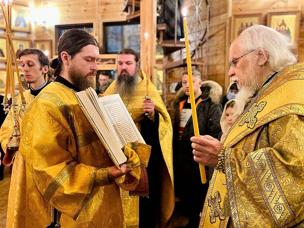 1 января 2022 года, накануне Недели 28-й по Пятидесятнице, перед Рождеством Христовым, святых отец, и дня памяти праведного Иоанна Кронштадтского, чудотворца, в храме святителя Луки, архиепископа Симферопольского и Крымского, в Зюзине, возведенного на месте строительства храма в честь священномученика Ермогена, Патриарха Московского и всея Руси, чудотворца, временно управляющий Юго-Западным викариатством епископ Верейский Пантелеимон совершил Воскресное всенощное бдение.