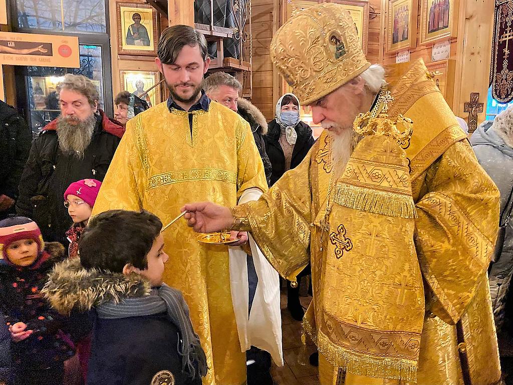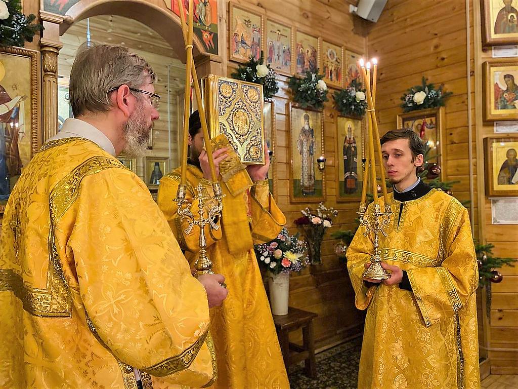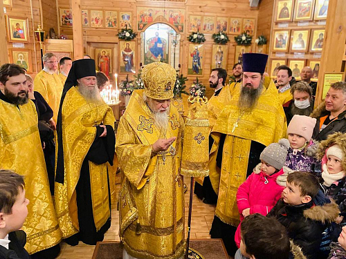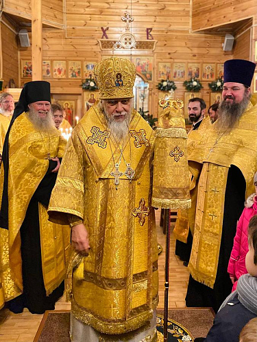 В проповеди после чтения Евангелия викарий Святейшего Патриарха поздравил всех собравшихся с Предпразднством Рождества Христова, поблагодарил настоятеля иерея Иоанна Омелянчука, духовенство и прихожан за теплый прием, за радость совместной молитвы.