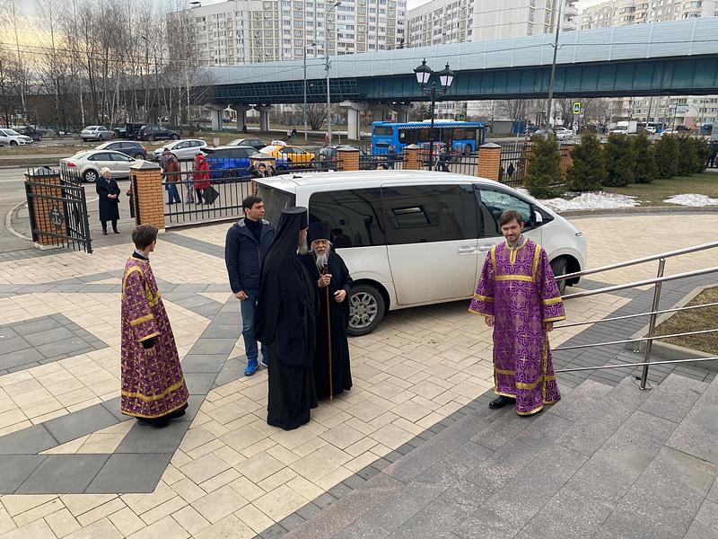 9 апреля 2022 года, в Неделю 5-ю Великого поста, день памяти преподобной Марии Египетской, епископ Верейский Пантелеимон, временно управляющий Юго-Западным викариатством г. Москвы, викарий Святейшего Патриарха Московского и всея Руси, совершил Всенощное бдение в храме святого праведного воина Феодора Ушакова в Южном Бутове города Москвы.
