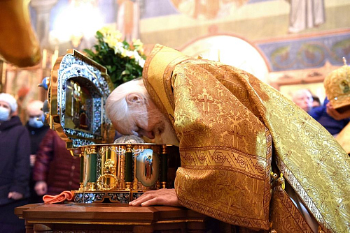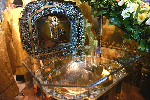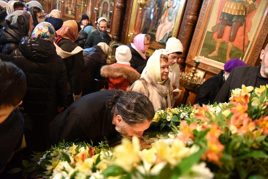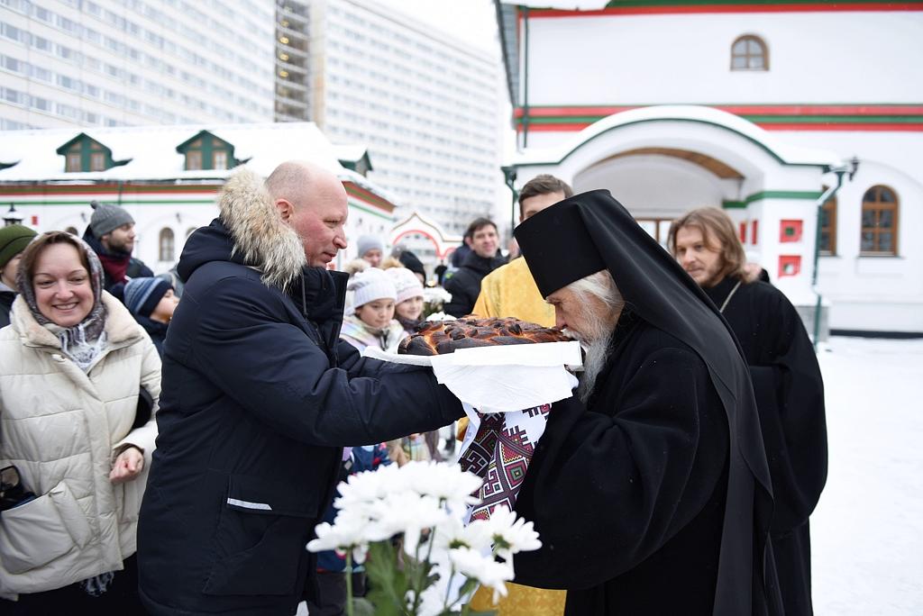 Затем было совершено славление святителю Николаю и святому благоверному князю Александру Невскому, мощи которого на несколько дней принесены в храм Живоначальной Троицы в Старых Черемушках для молитвенного поклонения.