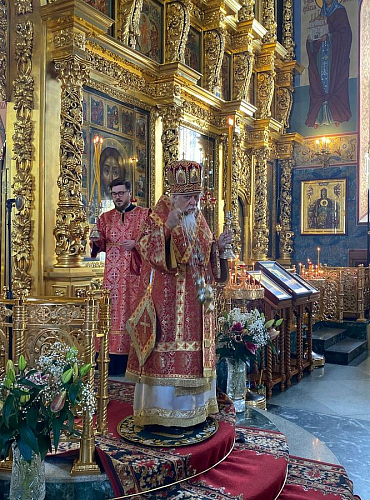 7 мая 2022 года, в субботу второй недели по Пасхе, епископ ВерейскийПантелеимон, временно управляющий Юго-Западным викариатством г. Москвы, викарий Святейшего Патриарха Московского и всея Руси, возглавил Божественную Литургию в храме преподобной Евфросинии, великой княгини Московской, Патриаршем подворье в Котловке.