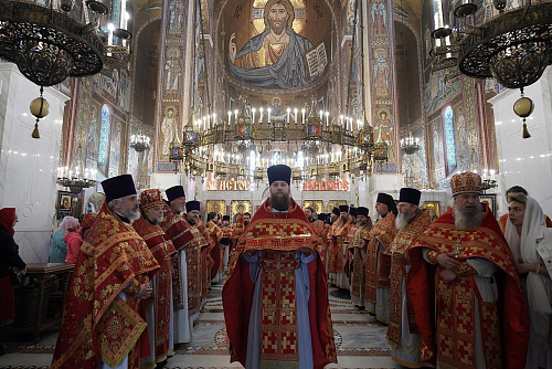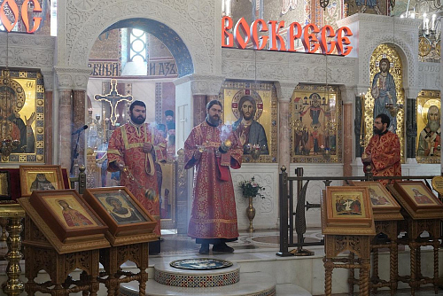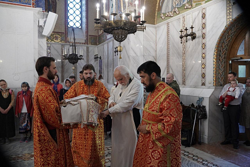 Преосвященному Владыке сослужило духовенство храмов Юго-Западного викариатства: