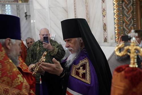 В завершение Божественной Литургии были провозглашены многолетия Святейшему Патриарху Московскому и всея Руси Кириллу, властям, воинству России и всему православному народу.