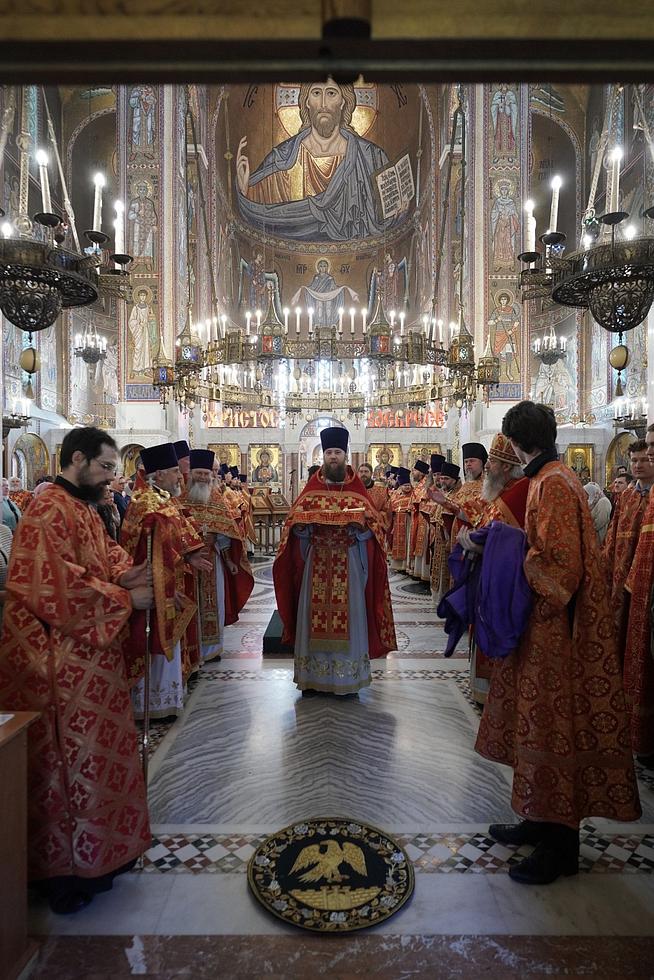 На сугубой ектении были вознесены особые прошения, владыка Пантелеимон прочитал молитву о Святой Руси.