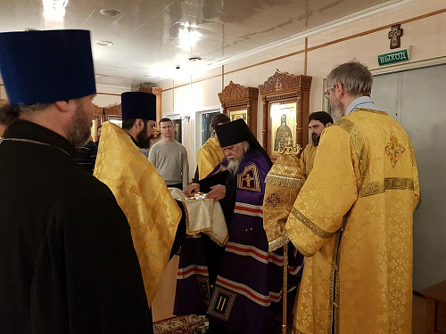 Сослужили епископу Пантелеимону настоятель и клирики храма: протоиерей Андрей Алексеев, иерей Анатолий Эдельберг, иерей Давид Осипов и диакон Илия Кадин. Помолиться на архиерейской службе собрались прихожане и сотрудники подворья, трудящиеся в различных подразделениях культурно-образовательного центра «Восход».