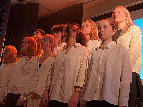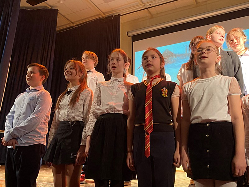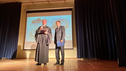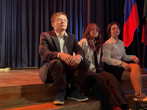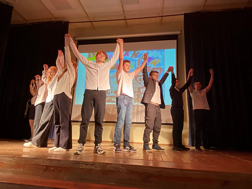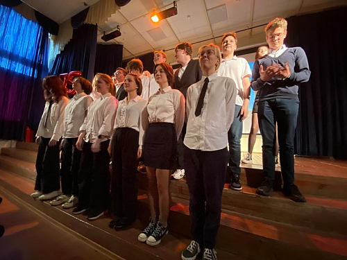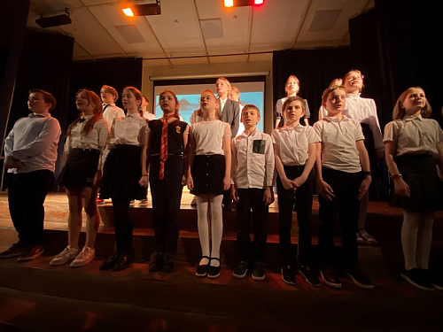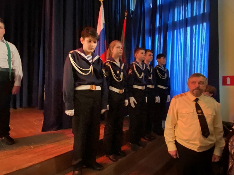 Перед собравшимися в актовом зале был пронесен Государственный флаг России и прозвучал Гимн Российской Федерации. В коллективном исполнении гимна Российской Федерации слились голоса зрителей, участников и почетных гостей мероприятия.