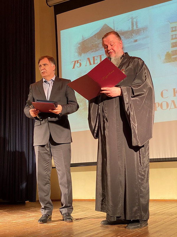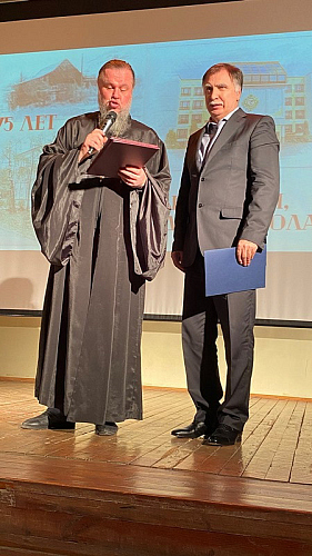 От лица Главы Муниципального округа Южное Бутово Голубцова Павла Викторовича настоятель наградил школу 1161 памятной медалью муниципального округа в честь 20-летия канонизации святого праведного воина Феодора Ушакова.