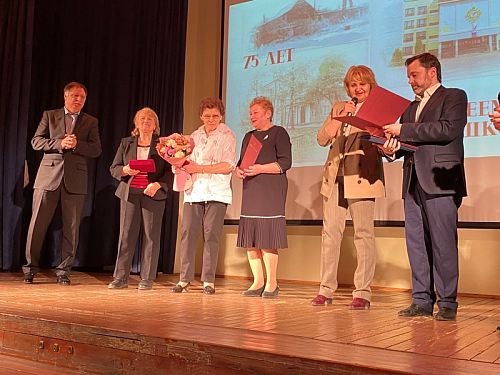 Все выступающие отметили особую роль педагогов в образовательной организации, поблагодарили их за ежедневный труд и вручили Ветеранам педагогического труда и действующим преподавателям школы почетные награды от Департамента образования города Москвы, Мосгордумы, Управы района Южное Бутово, Школы 1161. Красивым букетом и знаком отличия Людмила Ивановна поздравила почетного гостя - Евгению Сергеевну Плекину, директора Школы 1161 с 1987 по 2011 год, которая несколько позже погрузила всех зрителей в приятные воспоминания о школьной жизни прошлых лет.
