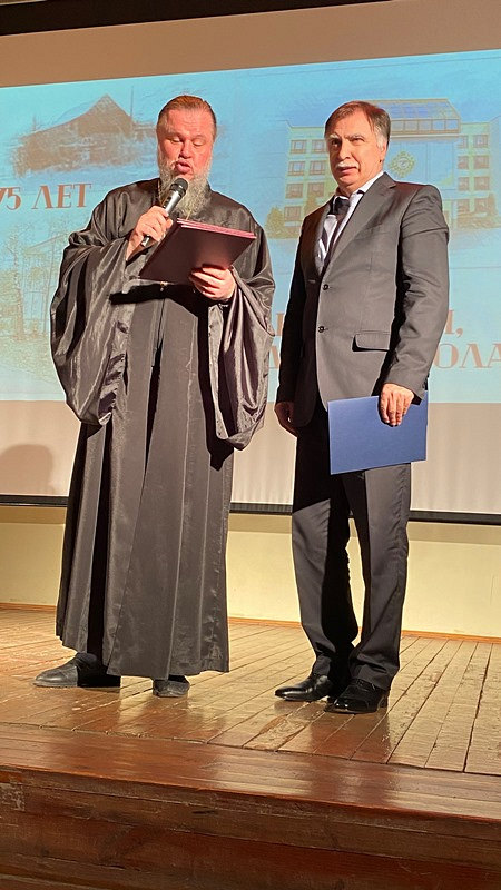 Также игумен Дамиан передал школе 1161 поздравительный адрес от Начальника штаба МО ВВПОД «ЮНАРМИЯ» ЮЗАО г. Москвы, Председателя Региональной общественной организации «Совет ветеранов боевых действий», генерал-майора Тутрина Николая Николаевича.