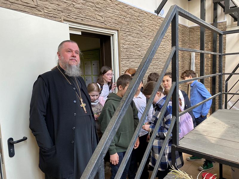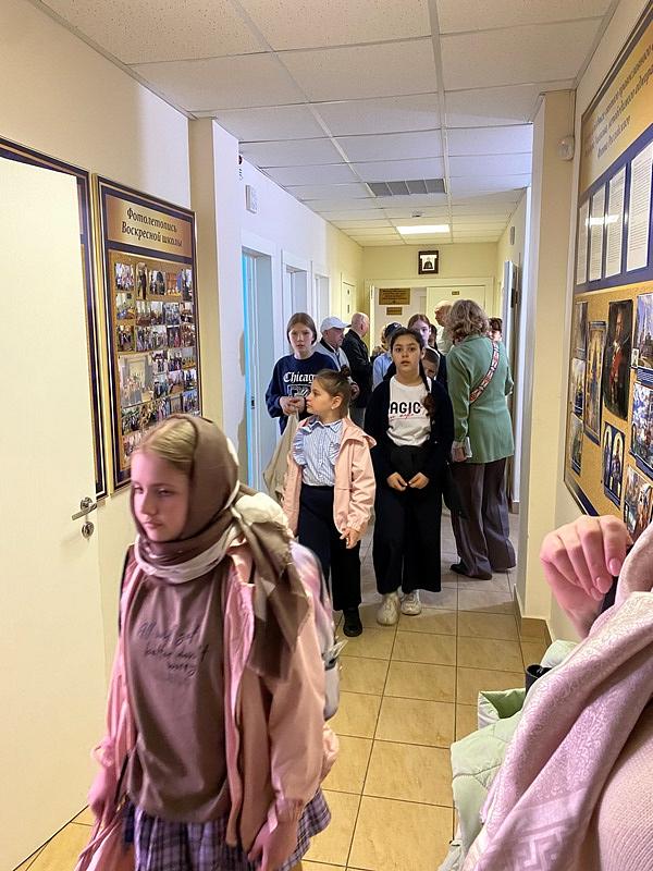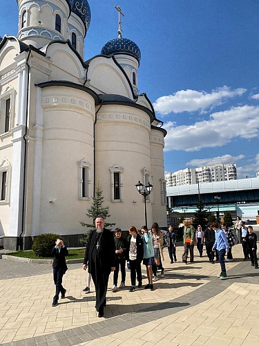 Учащиеся средней школы осмотрели Воскресную школу Подворья, классы и библиотеку, узнали какие занятия проходят в новом приходском здании для их товарищей, пожелавших там учиться.