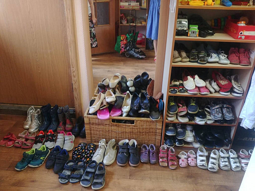 Помимо продуктовых наборов желающие могли взять обувь и одежду, подготовленную сотрудниками социальной службы храма.