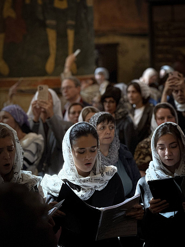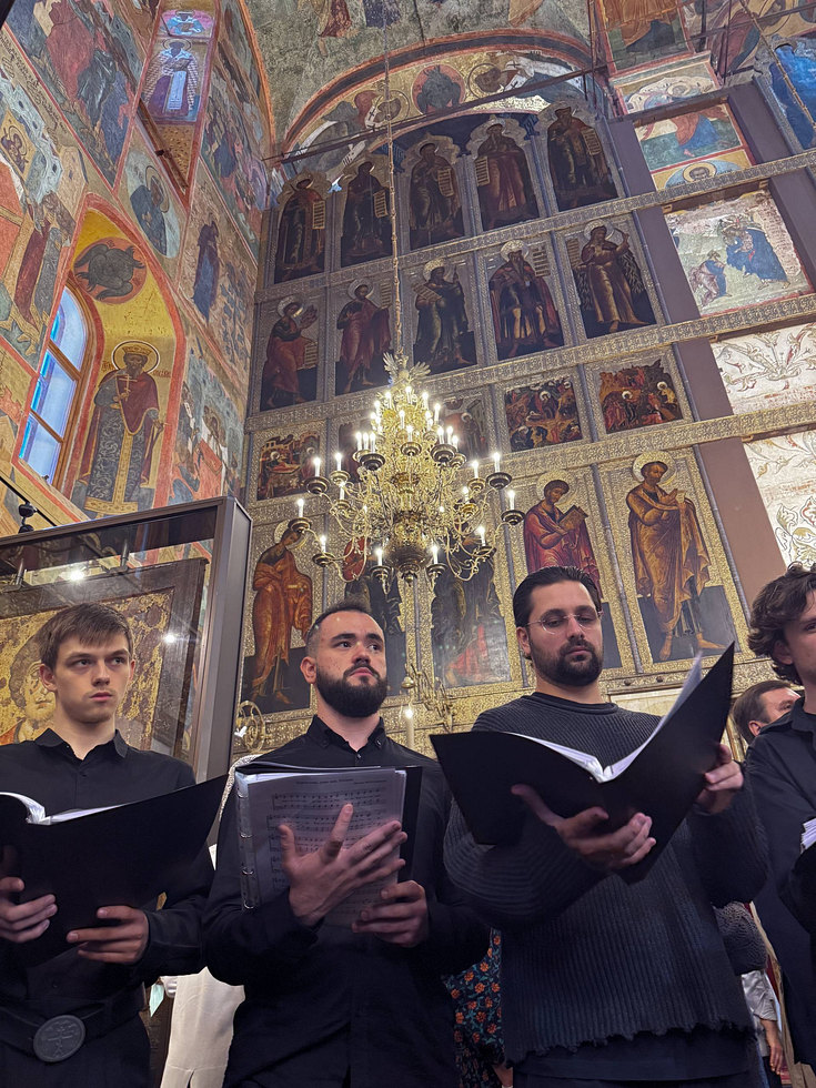 Песнопения Патриаршего богослужения исполнил хор храма Живоначальной Троицы в Конькове под управлением регента Александра Оводова.