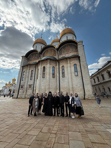 Богослужение посетила группа прихожан, сотрудников и священнослужителей храма во главе с помощником настоятеля храма Живоначальной Троицы в Конькове иеромонахом Ефремом (Русу) (30 человек).