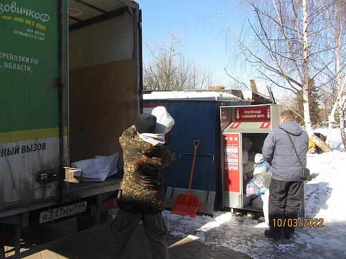 02,10 марта 2022 года были отгружены вещи из установленного на территории храма бокса-контейнера для сбора одежды, в рамках акции «Доброворот». Контейнер регулярно пополняется вещами, которые приносят жители района и прихожане храма.