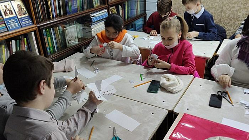 После экскурсии был проведён для школьников мастер-класс. Дети с удовольствием и вдохновением созидали свои поделки. Все они получились совершенно разные по цветовым сочетаниям, композиции и технике. Цель мастер класса — это сплочение учащихся, приобщение к совместному творчеству и развитие фантазии.
