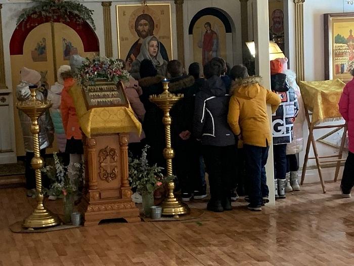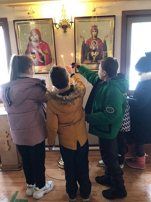 Она уделила внимание жизнеописание номомученников и исповедников Российских, которые пострадали во времена гонений на Церковь, рассказала об устройстве храма и приближающемся празднике Рождества Христова, а также рассказала краткое житие святого покровителя храма священномученика Василия, протоиерея Московского. Во время экскурсии Наталья Александровна ответила намногочисленные вопросы детей. В храме ребята поставили свечи с молитвой и просьбой о своих нуждах.