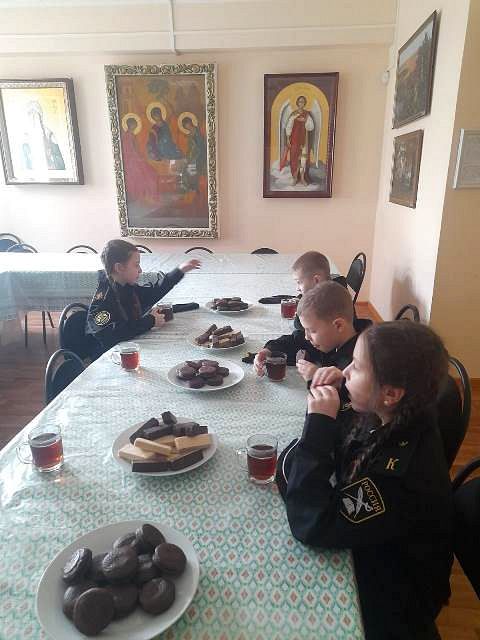 Кадетов и сопровождающих их наставников при входе в храм встретил настоятель, член штаба Юнармии ЮЗАО г. Москвы, игумен Дамиан (Залетов). В мероприятии также приняла участие администратор Воскресной школы Чумаченко Лариса Леонидовна.