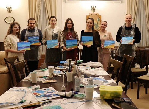 5 апреля 2025 года после вечернего богослужения в храме Всех преподобных отцев Киево-Печерских прошел художественный мастер-класс для молодежи.