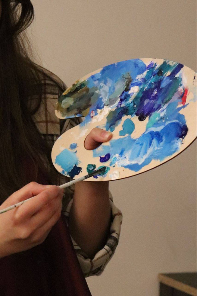 На встрече участники узнали много интересного: например, как работать с акрилом, как смешать нужные цвета, разобрали основные приемы и этапы создания картины на холсте.
