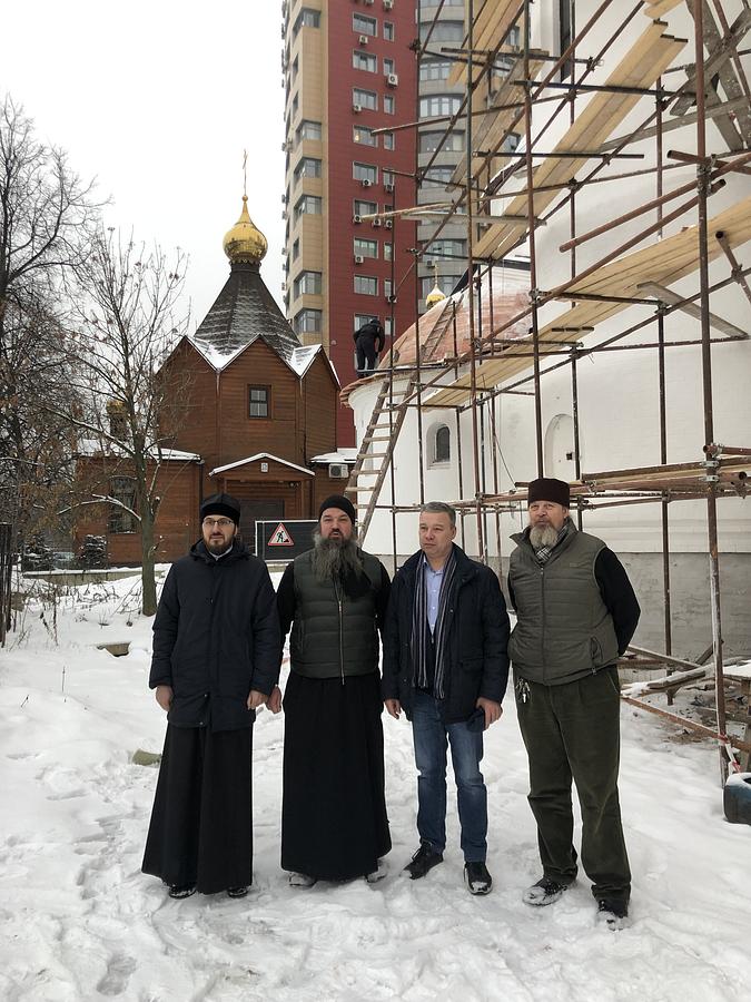 После богослужения и.о. председателя ФХУ в сопровождении настоятеля и представителя генподрядной организации ООО «ГенСтройТрест» осмотрели ход работ.