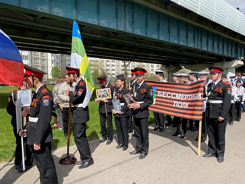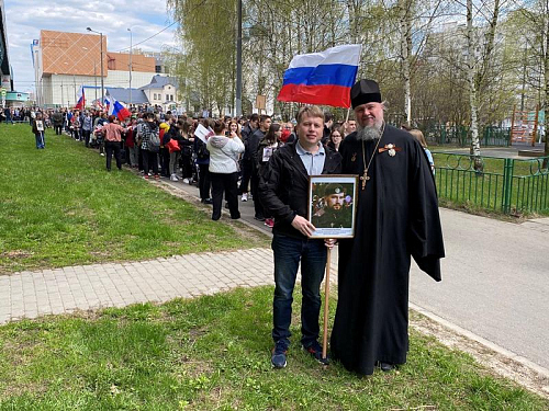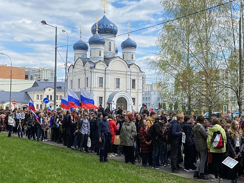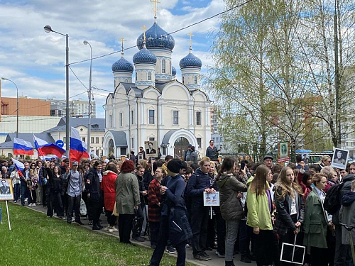 В шествии шли дети, их родители и директор Воскресной школы храма Святого адмирала. Они, как и все, несли портреты своих предков, участников Великой Отечественной войны.