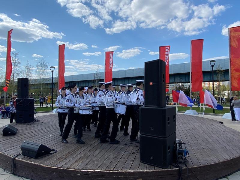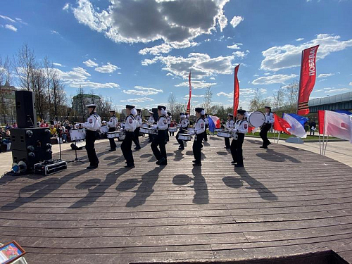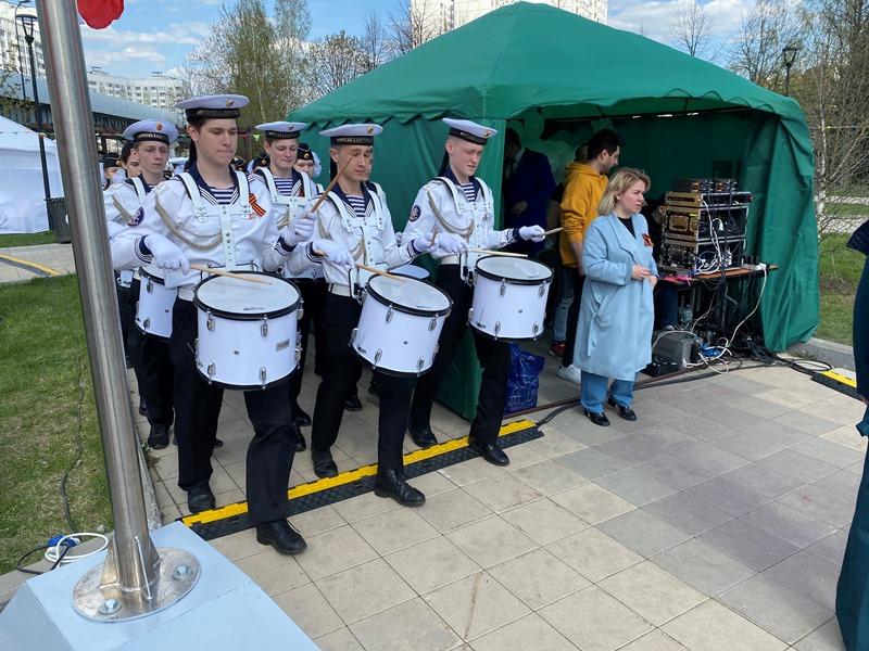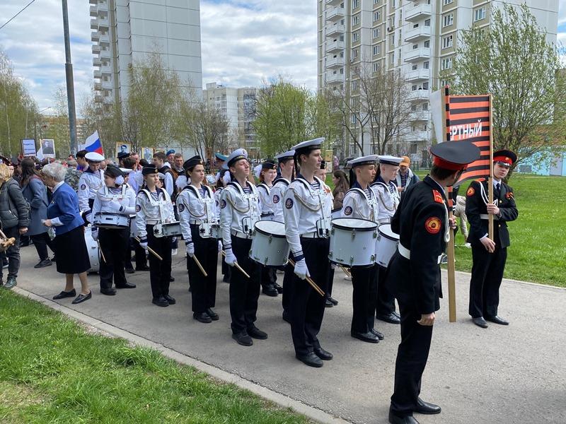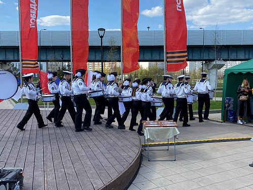 Свое мастерство в строевой ходьбе и игре на барабанах продемонстрировали школьники, учащиеся школы 1883, кадеты-юнармейцы под руководством наставника-воспитателя полковника Зятчина Владимира Сергеевича.