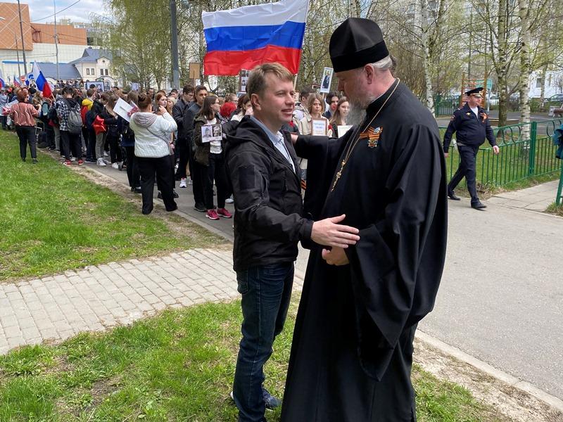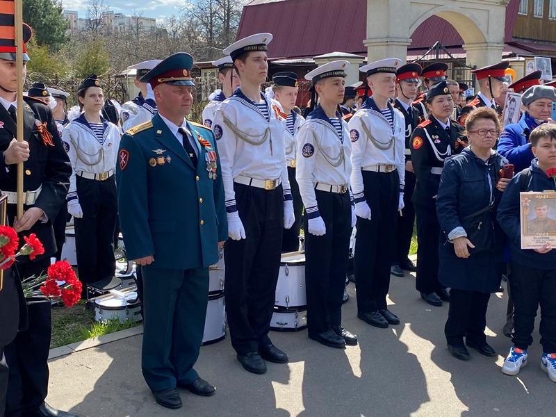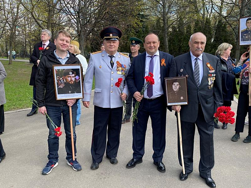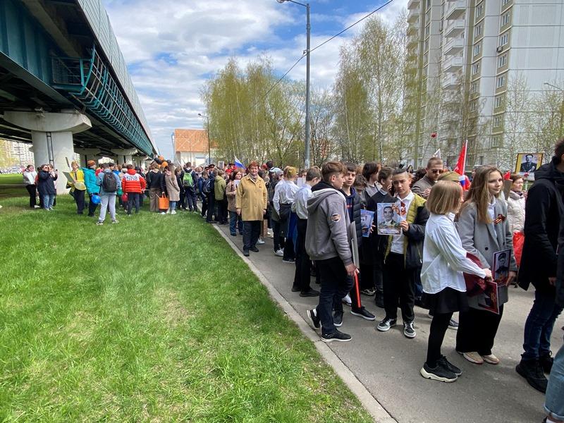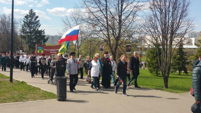 В единой колонне шли депутат Мосгордумы Гусева Людмила Ивановна с портретом своего отца-героя, глава Управы района Южное Бутово Мурад Азадович Бекниязов со своим отцом-ветераном, Глава Муниципального образования Южное Бутово Голубцов Павел Викторович, депутаты Муниципального совета района Южное Бутово, директора и педагоги школ района, настоятель храма святого праведного воина Феодора Ушакова в Южном Бутове игумен Дамиан (Залетов) и другие.
