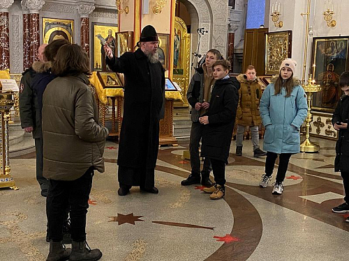 Впервые такая большая группа школьников посетила церковно-археологический музей Подворья. Настоятель подробно рассказал ребятам об экспонатах и призвал бережно хранить историю своей жизни и своей семьи.