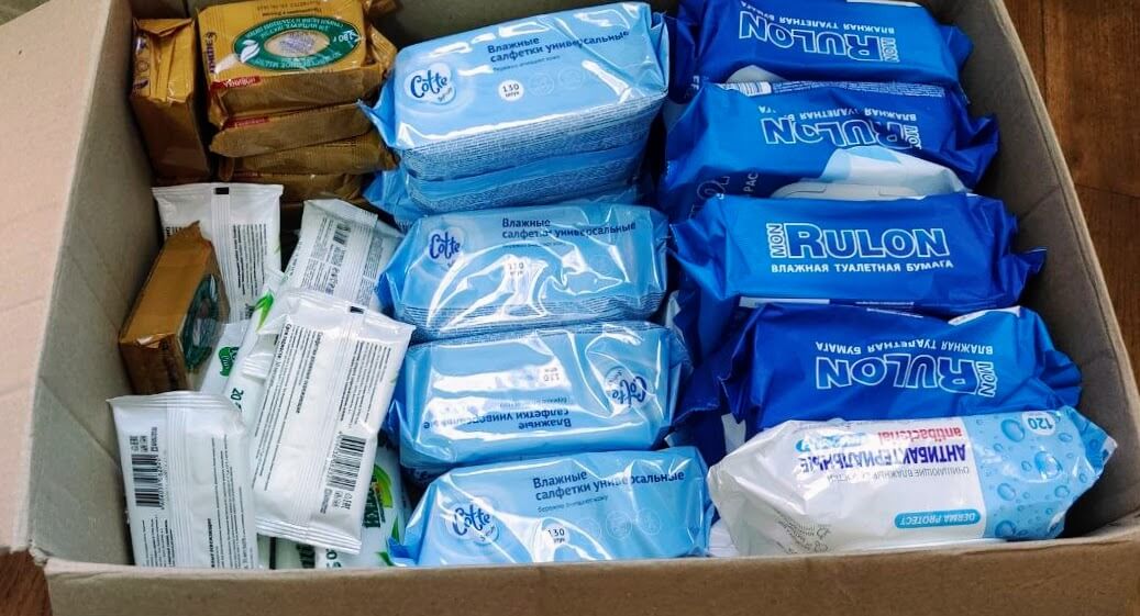 На собранные в храме средства были закуплены термобелье, тактические перчатки, балаклавы, носки, влажные салфетки, чай, кофе, сладости.