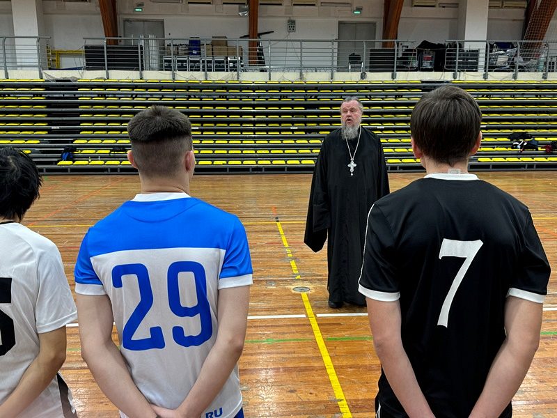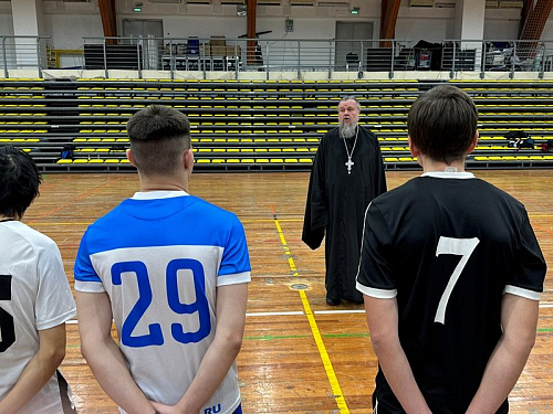 На турнире присутствовал и поддерживал свою команду, настоятель храма игумен Дамиан (Залетов). Настоятель обратился к участникам со словом приветствия, в котором поздравил всех с Днем российского студенчества, напомнил о знаменательной дате, к которой приурочивается турнир - это 280-летие со дня рождения непобедимого адмирала Флота Российского Ф.Ф, Ушакова, святого воина Христова. Также настоятель пожелал молодежи крепости сил, духовной бодрости и прочитал молитву перед началом состязания.