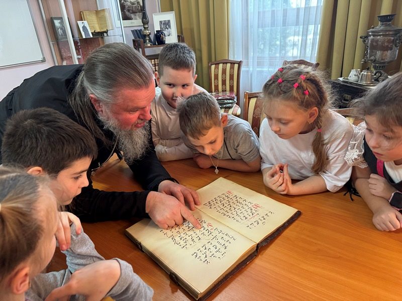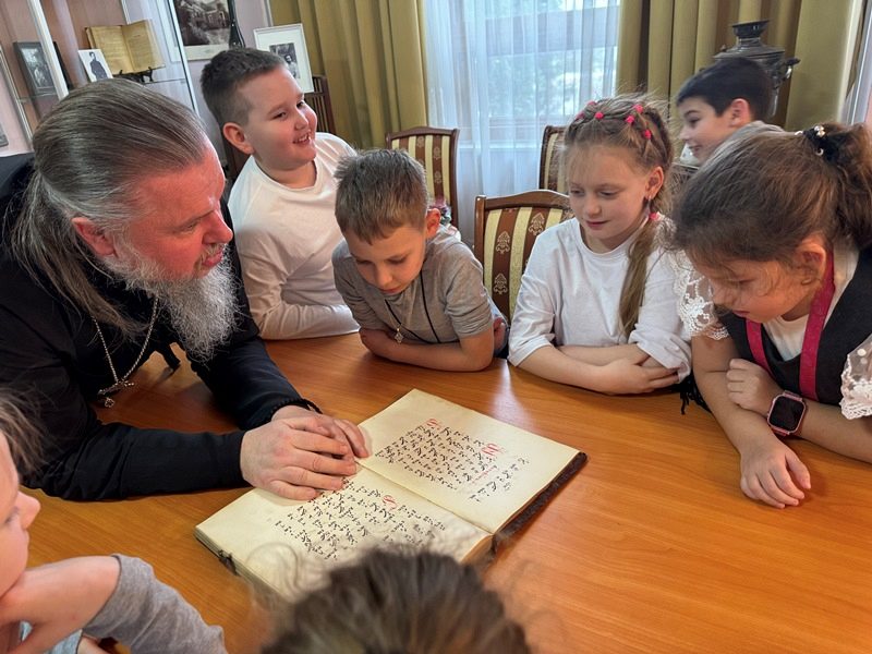 17 марта 2025 года в музейном комплексе ГБОУ "Школа № 1161" г. Москвы настоятель храма святого праведного воина Феодора Ушакова в Южном Бутове игумен Дамиан (Залетов) провел специальное занятие для школьников о книгопечатании и истории книги.