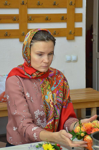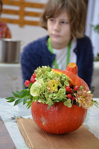 26 сентября в преддверии Дня Учителя в Воскресной школе храма Священномученика Ермогена в Зюзине состоялся мастер-класс по созданию композиции из живых цветов в тыкве. Провела мастер-класс преподаватель по творчеству Бельских Дарья Михайловна.