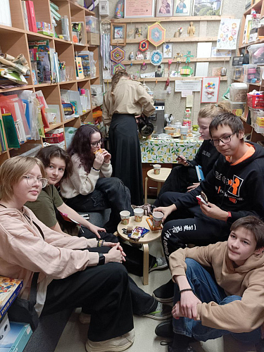 1 марта 2025 года старшие воспитанники воскресной школы при храме Святителя Стефана Пермского в Южном Бутово под руководством наставника Елены Мазепы провели мастер-класс по мультипликации для пациентов РДКБ. Встреча прошла в домовом храме больницы в честь Покрова Пресвятой Богородицы.
