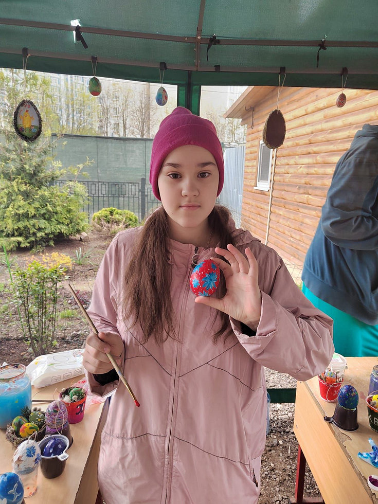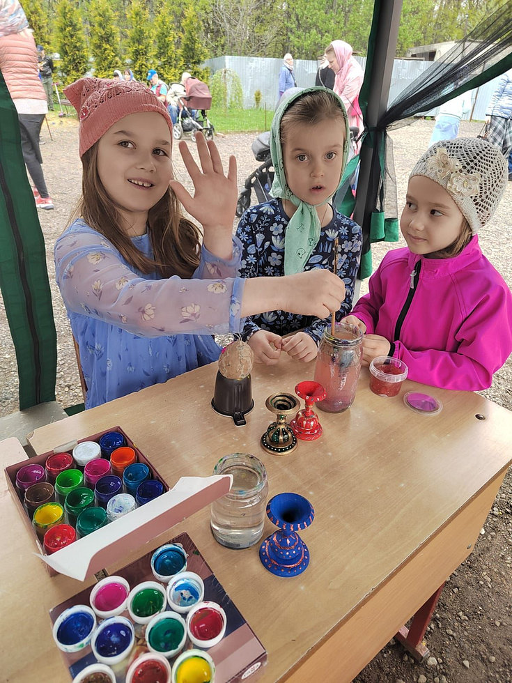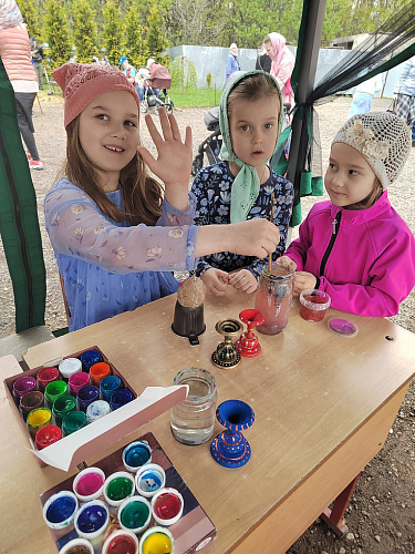 28 апреля 2024 года по благословению и.о. настоятеля храма Великомученицы Анастасии Узорешительницы в Тёплом Стане иерея Димитрия Борсука после службы прошел урок росписи яиц для украшения храма к Пасхе под руководством Александры Евгеньевны Кургановой. Принять участие в росписи могли все желающие.