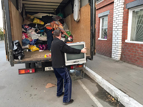 Было отправлено 2 машины благотворительной помощи: мужская, женская, детская одежда и обувь; предметы первой необходимости, костыли, ходунки и памперсы для пожилых людей; для детей - школьные принадлежности, игрушки, ванночки для купания, столики для кормления, коляски. Также была направлена продуктовая помощь: крупы, чай, консервы. Всего было передано около 2 тонн помощи.