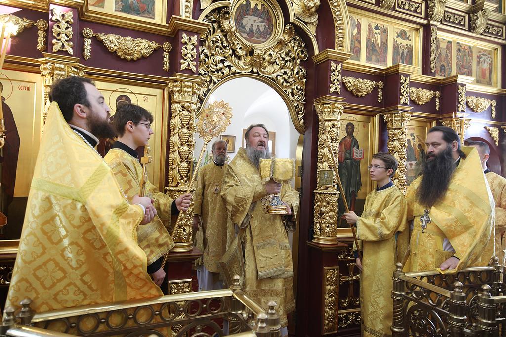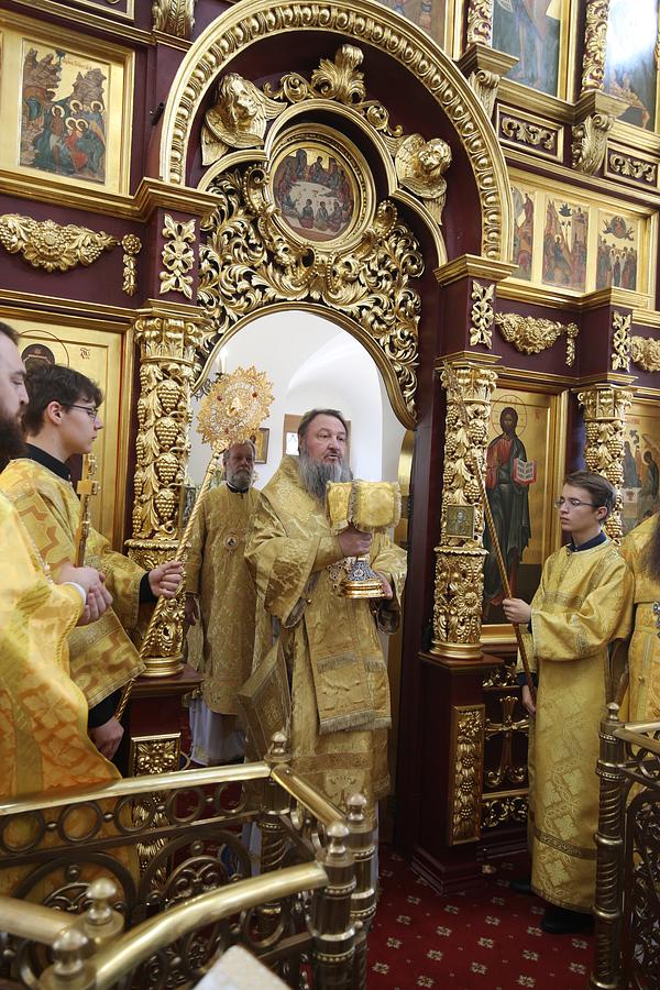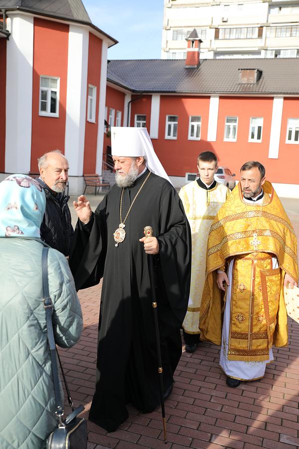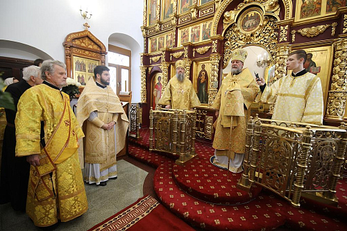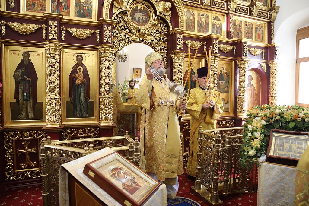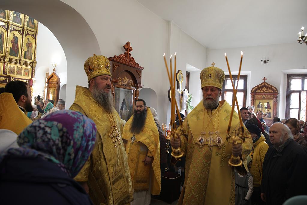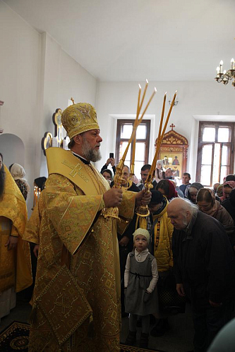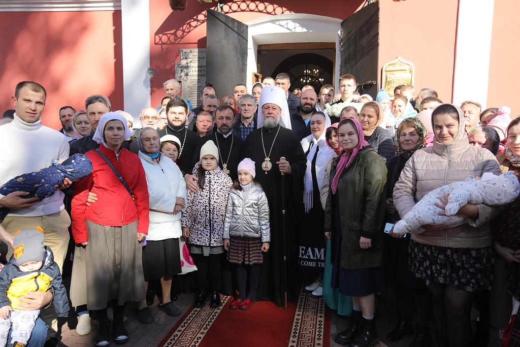 По окончании Литургии митрополит Владимир обратился к присутствующим с архипастырским словом, в котором сердечно поздравил всех с праздником, поблагодарил за поддержку и труды в благоустройстве храмового комплекса и призвал молиться о мире и благодарить Бога за нашу земную жизнь.