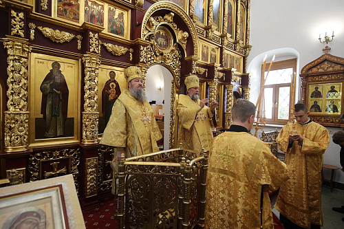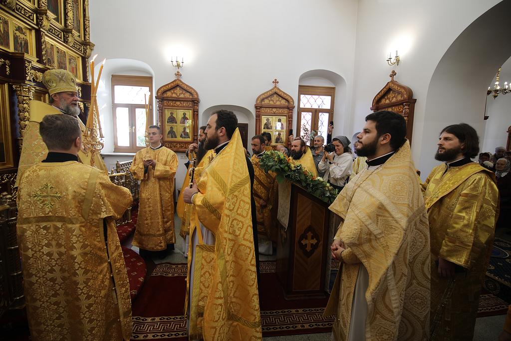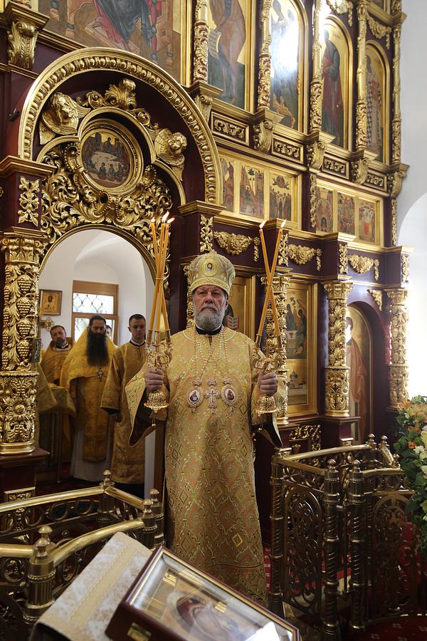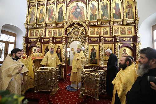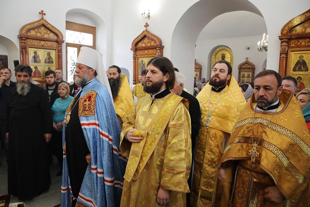 Его Высокопреосвященству сослужили: Архиепископ Тираспольский и Дубоссарский Савва, помощник настоятеля иеромонах Ефрем (Русу) и духовенство храма.