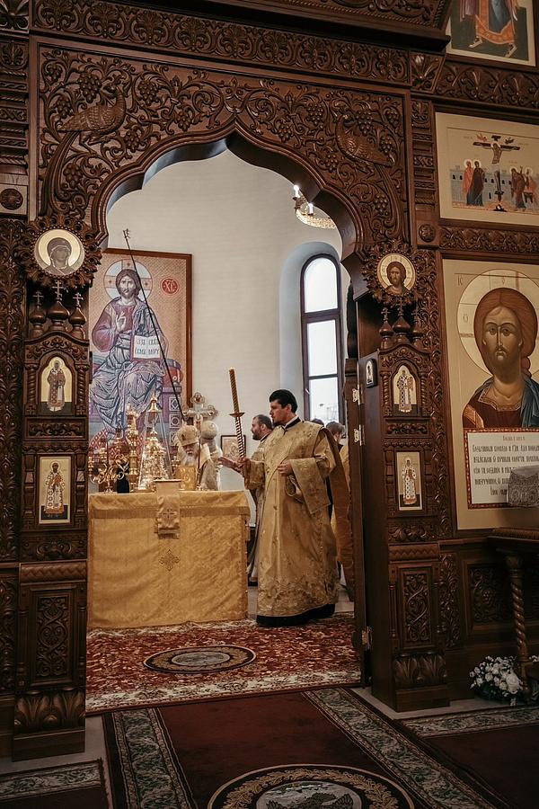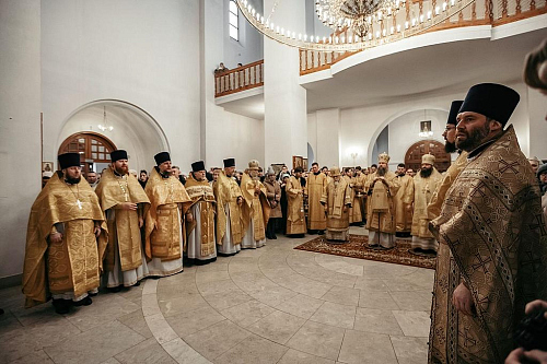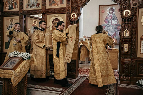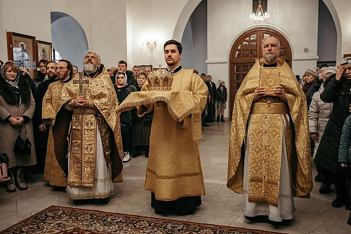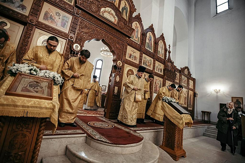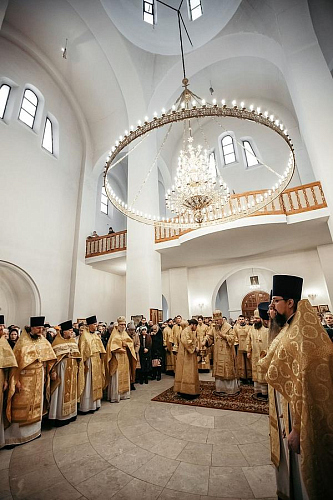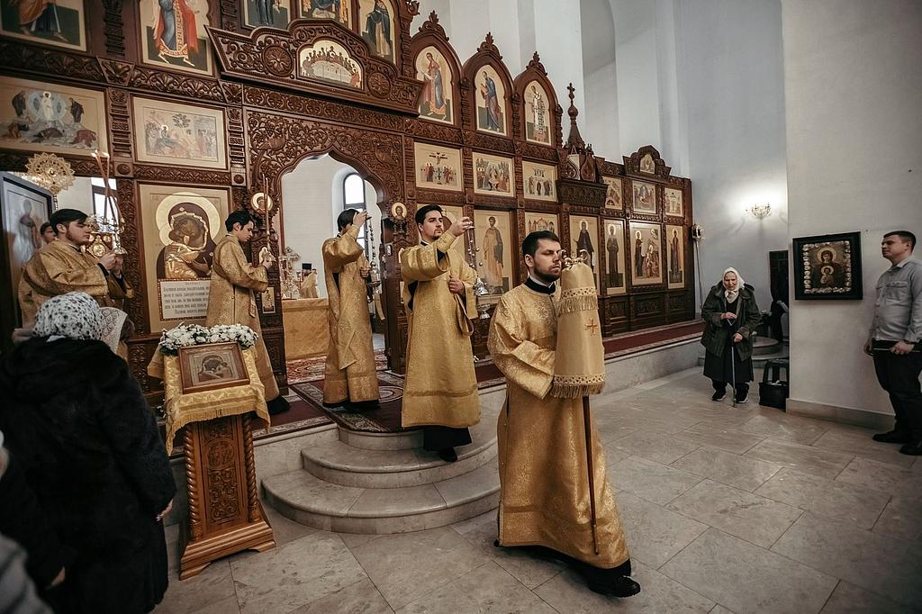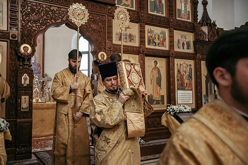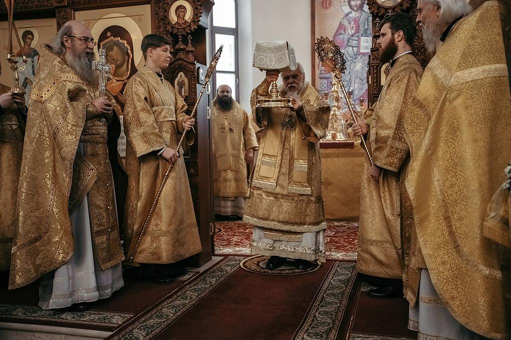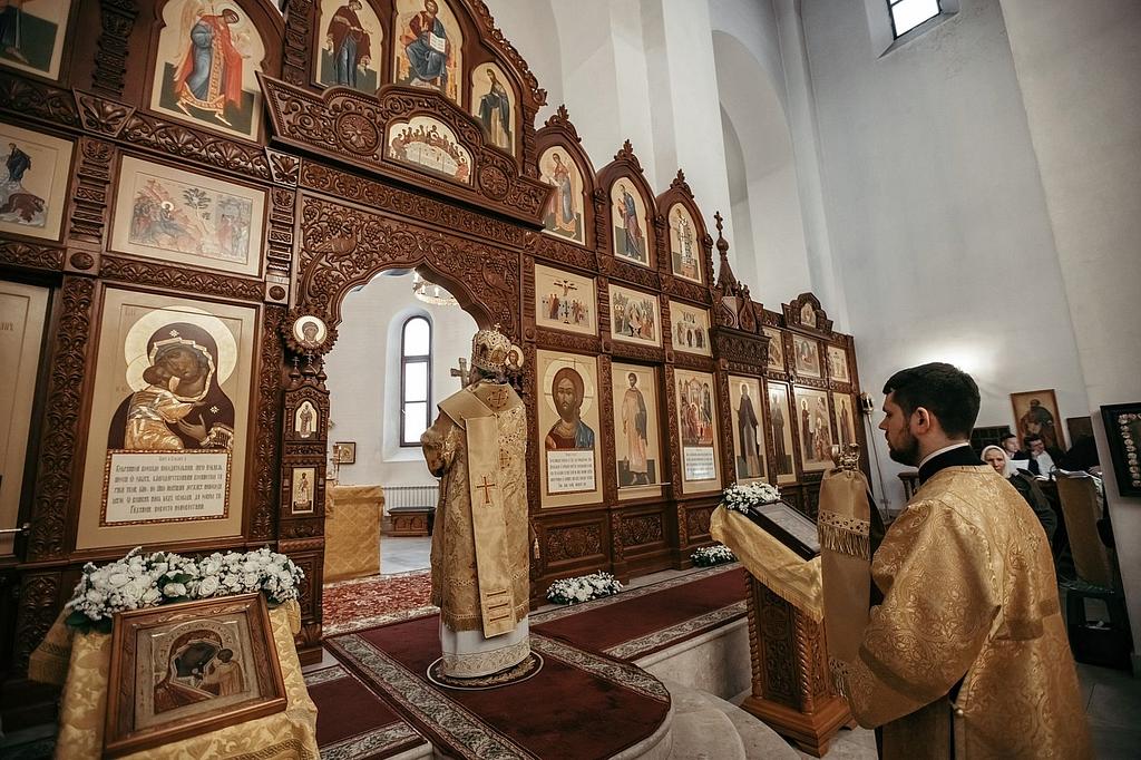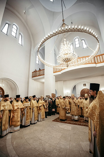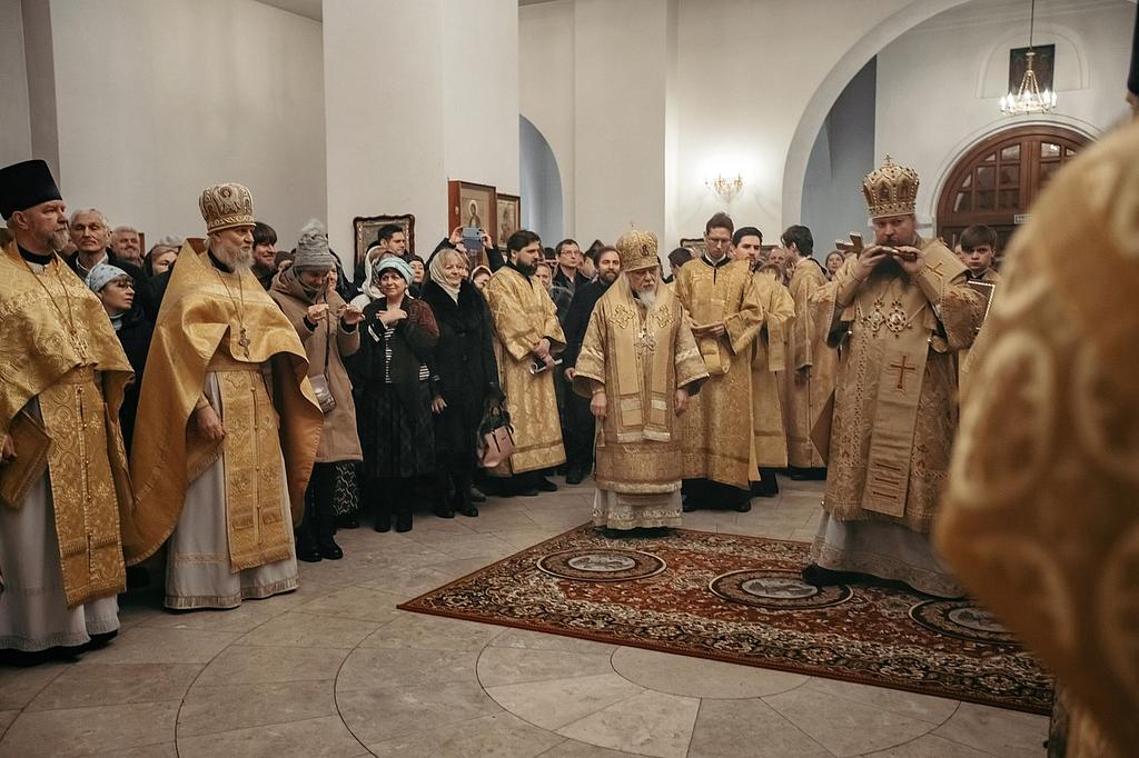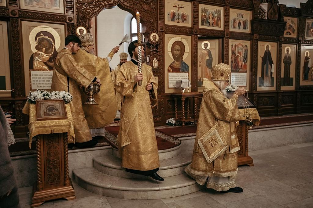 Его Высокопреосвященству сослужили: епископ Верейский Пантелеимон, временный управляющий Юго-Западным викариатством, епископ Наро-Фоминский Парамон, управляющий Северным и Северо-Западным викариатствами, протопресвитер Владимир Диваков, секретарь Святейшего Патриарха по г. Москве, благочинный Центрального округа, настоятель храма «Большое Вознесение», протоиерей Анатолий Кожа, благочинный Параскево-Пятницкого округа, настоятель храма Параскевы Пятницы в Качалове, протоиерей Игорь Федоров, настоятель храма Введения во храм Пресвятой Богородицы в Черневе, духовенство Московской епархии.