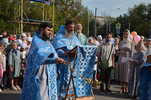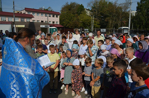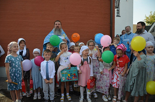 На проповеди настоятель храма поздравил всех с началом учебного года и пожелал возрастания мудрости в познании и крепкой молитвы. Сугубо поздравил первоклассников, по традиции вручив им школьные наборы.