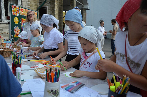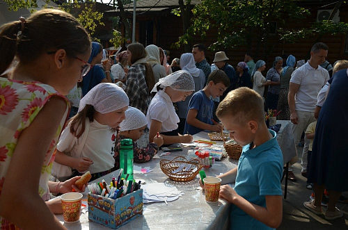 В продолжение праздника для всех прихожан на прихрамовой территории было организовано чаепитие с бутербродами и угощением, а также творческая мастерская по изготовлению полезных закладок для книг, с цитатами из Священного Писания о пользе учения, в которой приняли участие дети Воскресной школы и гости праздника. Прозвучали школьные песни в исполнении детей под аккомпанемент аккордеона.