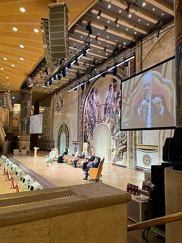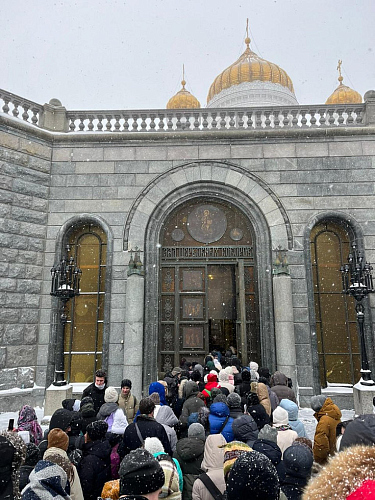 Перед началом работы форума участники мероприятия молились за Литургией, служение которой в Храме Христа Спасителя возглавил Предстоятель Русской Православной Церкви.