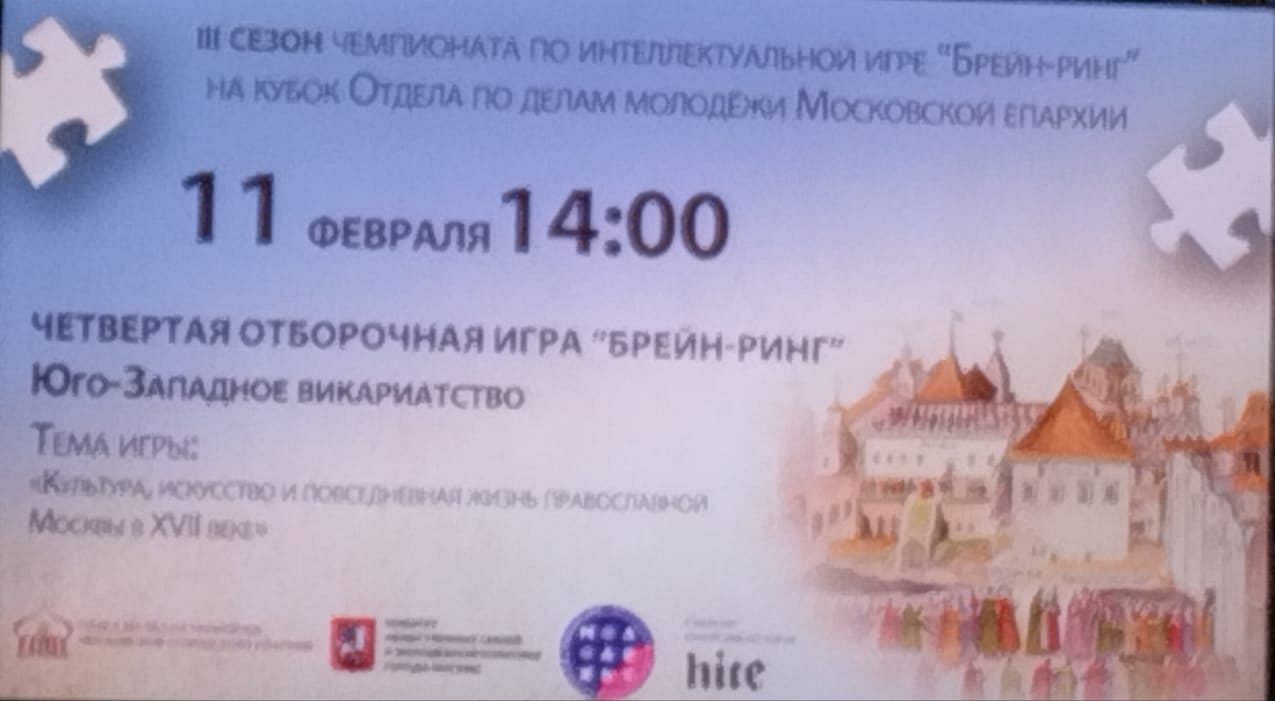 11 февраля 2024 года, в Неделю 36-ю по Пятидесятнице, молодежная команда храма святых праведных Симеона Богоприимца и Анны пророчицы в Черемушках приняла участие в IV отборочном туре общемосковского чемпионата по интеллектуальной игре «Брейн-ринг».