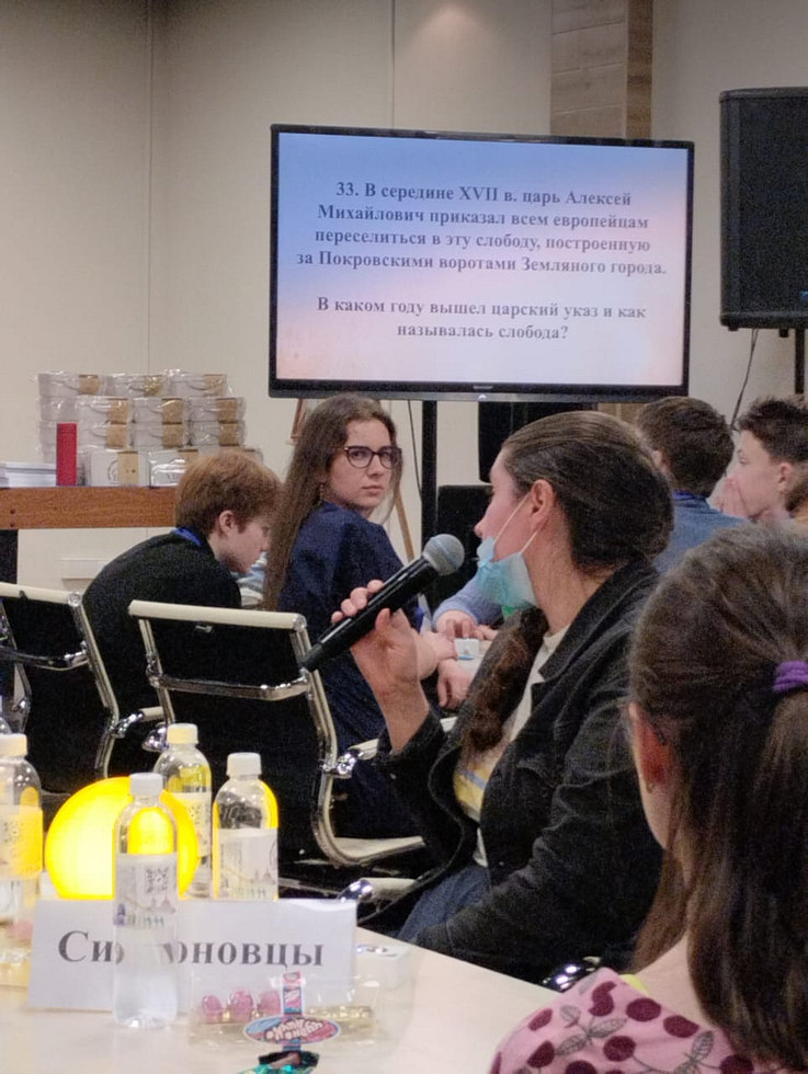 Молодежь храма, по традиции, представляла команда «Симеоновцы». Участники игры отвечали на вопросы по теме:«Культура, искусство и повседневная жизнь православной Москвы в XVII веке».