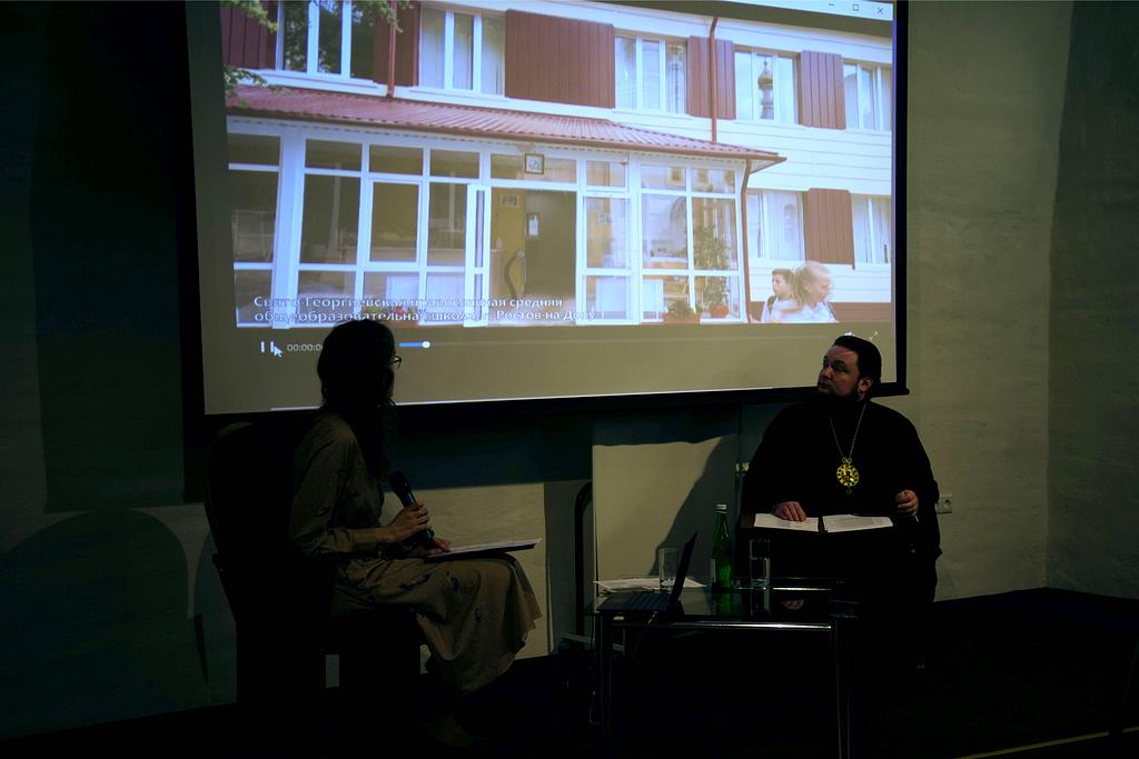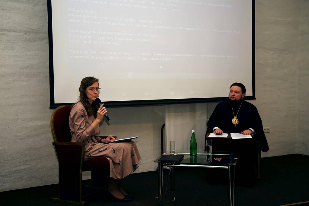Вниманию участников был представлен видеоролик о реализуемой по благословению епископа Истринского Серафима программе «Александр Невский – герой молодежи», в которой большое участие принимали представители Юго-Западного викариатства.