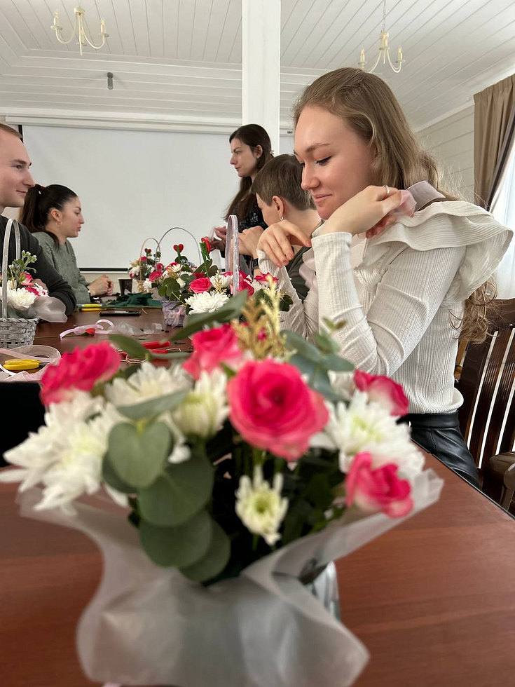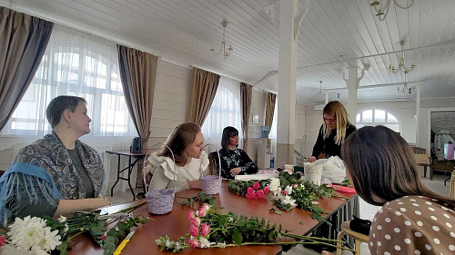 18 февраля 2024 года при храме преподобной Евфросинии Московской состоялся мастер-класс по флористике. Все желающие могли принять участие в изготовлении цветочных композиций.