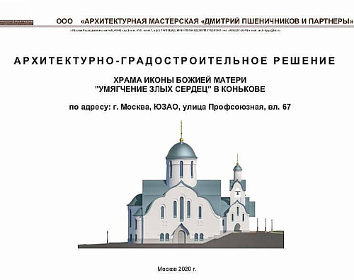 19 января Комитетом по архитектуре и градостроительству г.Москвы (Москомархитектурой) Правительства Москвы выдано свидетельство об утверждении архитектурно-градостроительного решения объекта капитального строительства : Храм иконы Божией Матери «Умягчение злых сердец» в Конькове.