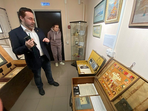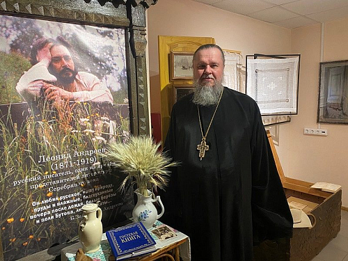 Во время своего пребывания на просветительском мероприятии игумен Дамиан обратил особое внимание на дополнительную экспозицию музея, связанную с памятью пострадавших во время репрессий, исповедников христианской веры. Эта выставка тесно связана с фамилией Андреевых и близких к ним лиц. Это Шик Михаил Владимирович, священник (1887-1937), который был расстрелян по делу епископа Арсения (Ждановского) на Бутовском полигоне. Находился в заключении и сын Леонида Андреева – Даниил Андреев. Замечательные материалы ярко отображали трагическую эпоху и вызывали глубокие переживания.